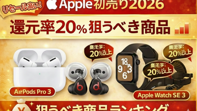 トレンド Apple初売り2026「転売・リセール向き」狙うべき商品ランキング|還元率データでロジカルに選ぶ Apple初売り2026で本当に得する製品はどれ?還元率データをもとに、リセール・転売向きの狙うべき商品をランキング形式で解説します。 トレンド趣味