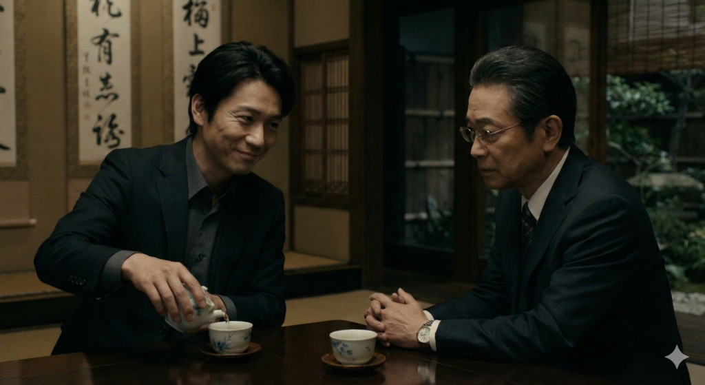 実は毎熊さん、高校時代からストリートダンスに没頭していたという経歴の持ち主です。 浦神が見せる、無駄のない動きやスッと伸びた美しい姿勢。お茶を淹れる何気ない動作一つとっても、指先まで神経が行き届いた優雅さがあるのは、身体の動かし方を熟知しているダンサー出身だからこそ。 この「洗練された身のこなし」が、フィクサーとしての品格と、人間離れした不気味さを同時に強調しているのです。
