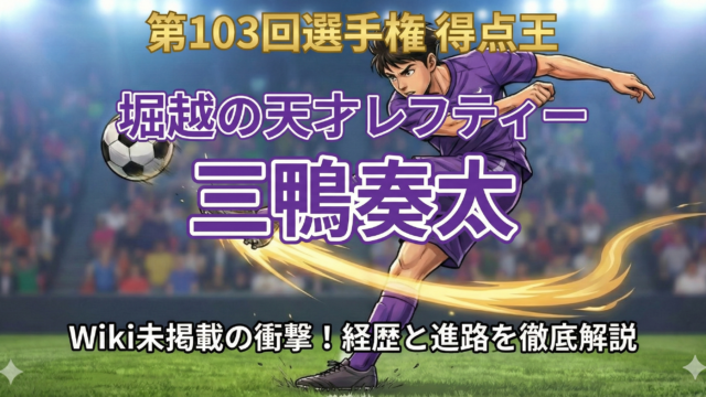 トレンド 堀越の天才ストライカー・三鴨奏太は何者?得点王の経歴と進路、プレースタイルを徹底解説!【プロフィール】 第104回全国高校サッカー選手権で得点王に輝いた堀越高校の三鴨奮(みかもりゅうま)選手を特集。「天才レフティー」と呼ばれるそのプレースタイルや凄さ、出身中学などのプロフィールに加え、気になる卒業後の進路についても徹底調査しました。 トレンド芸能・有名人