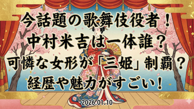 トレンド 今話題の歌舞伎役者!中村米吉は一体誰?可憐な女形が「三姫」制覇?経歴や魅力がすごい! テレビで「美しすぎる」と話題沸騰中の歌舞伎役者・中村米吉(なかむらよねきち)さん。妖艶な女方の舞台姿と、爽やかな素顔とのギャップが凄い!年齢・身長などのWiki風プロフィールから、華麗な家系図、気になる結婚の噂、話題の写真集まで、その魅力を画像付きで分かりやすく解説します。 トレンド芸能・有名人