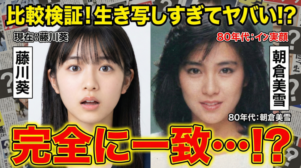 この先2週間で地上波初登場を控えている彼女に、早くもとんでもない都市伝説が浮上しているんです! そう、信じられないかもしれませんが、SNSを駆け巡っているのは**「藤川葵が、あの伝説の女優・朝倉美雪の生き写しではないか」**という衝撃の説。しかも、ただ似ているだけじゃないんです。彼女のデビューをめぐって、まるで隠された血筋や、時空を超えた再来かのような憶測が飛び交い、今、エンタメ界はまさに大騒ぎの渦中!